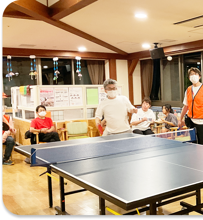 ケアタウン成増では、職員同士の交流を深める機会を大切にしています。忘年会・暑気払いといった季節ごとの行事や、ときには職員交流卓球大会など、さまざまなイベントを通して、日々の仕事以外でもつながりを感じられる職場です。
